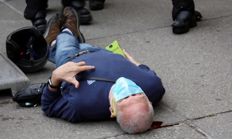 ّتم توجيه “جناية” الاعتداء إلى الضابطين في شرطة بافالو في نيويورك، آرون تورجالسكي البالغ من العمر ٣٩ عاماً وروبرت مكابي البالغ من العمر ٣٢ عاماً بعد أن تم إتهامهما السبت بالإعتداء على رجل يبلغ من العمر ٧٥ عاماً كان يحتج خارج قاعة “سيتي هول” في المدينة مساء الخميس .