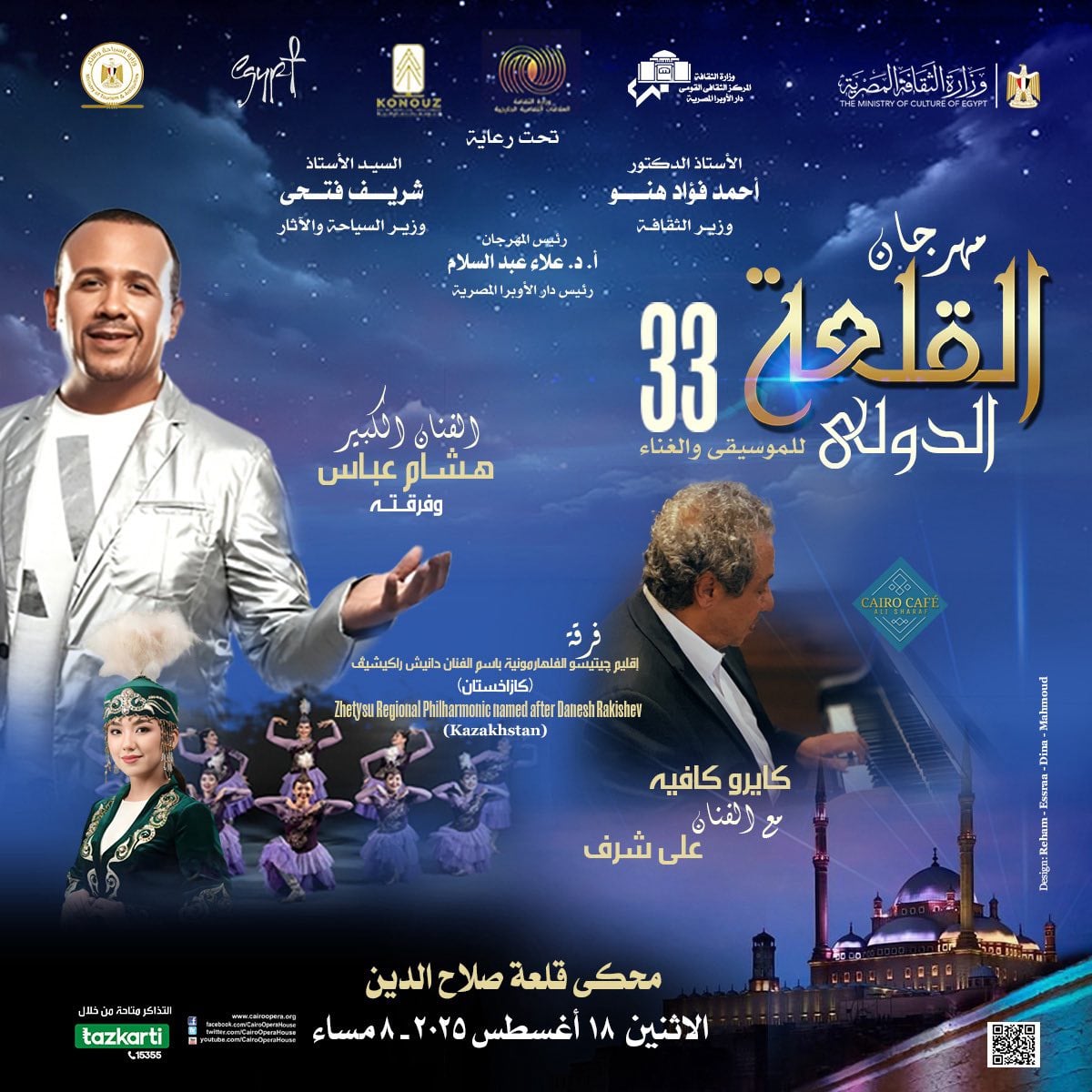 في أمسية فنية مبهرة تجمع بين عبق التاريخ وروعة الموسيقى، حيث تتألق الألحان في قلب القاهرة وتحت سماءها الصافية يلتقي جمهور القلعة في حفل افتتاح المهرجان يوم الجمعة ١٥ أغسطس ٢٠٢٥ بمسرح محكى قلعة صلاح الدين مع :