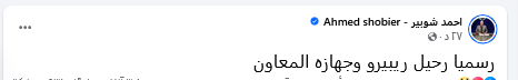نشر شوبير خبلر رحيل المدير الفني للأهلي خوسيه روبييرو و جهازه المعاون نتيجة ضغط جماهير الأهلي بعد خسارة الأهلي أمام بيراميدز و تندنس المستوي الفني .